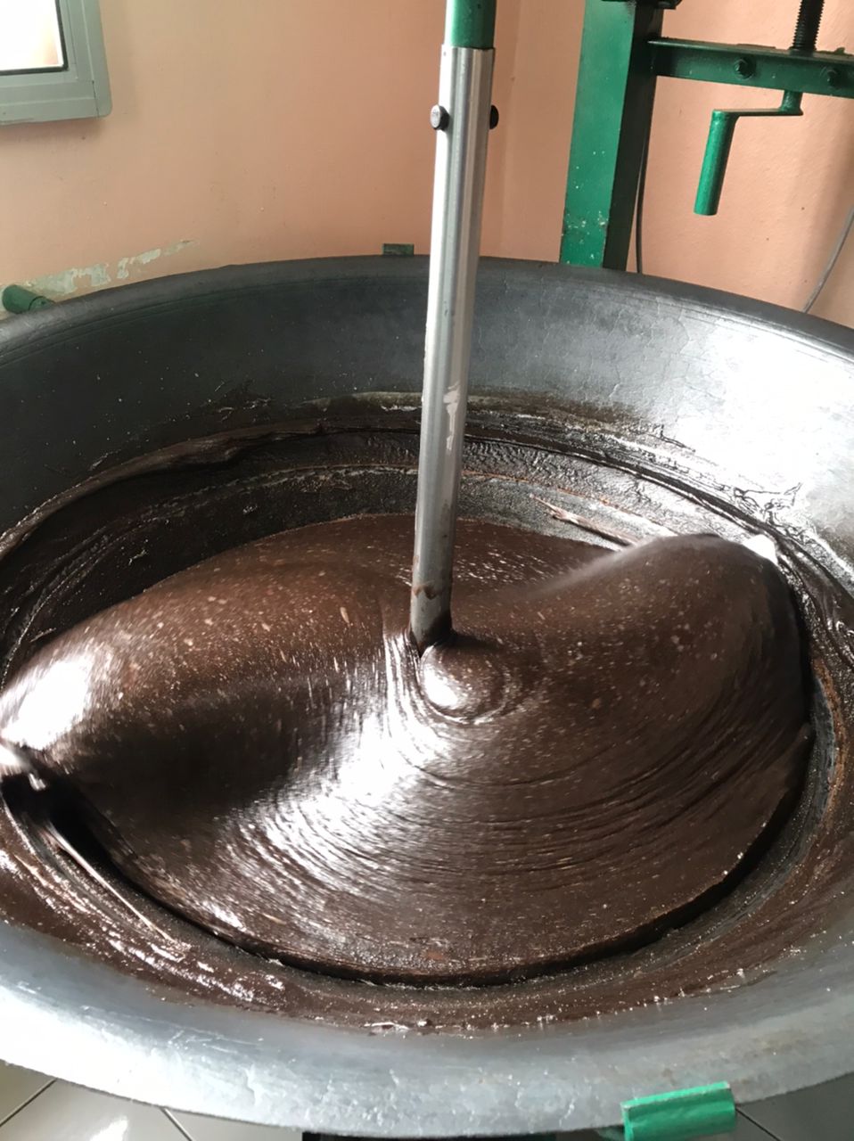Proses ini menjadikan tekstur dodol kekal asli, pekat dan kaya dengan rasa, hasil usaha penuh kesabaran dan ketelitian.